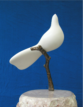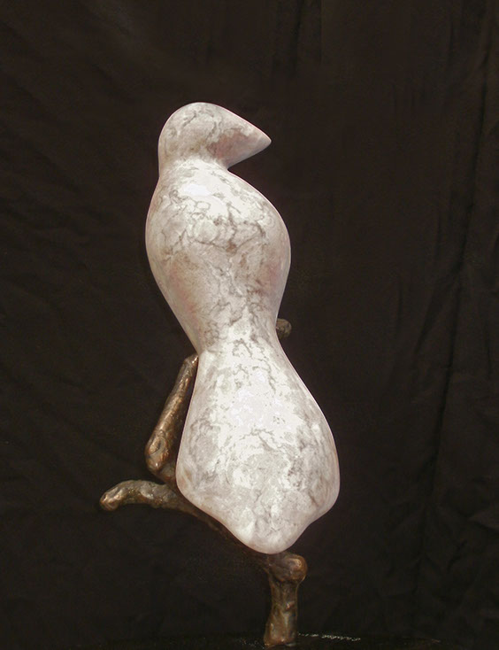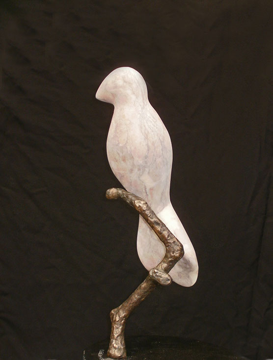 "The Dove", carrara marble, stainless steel & bronze, 14" h x 10 w, SOLD, unique, 2009