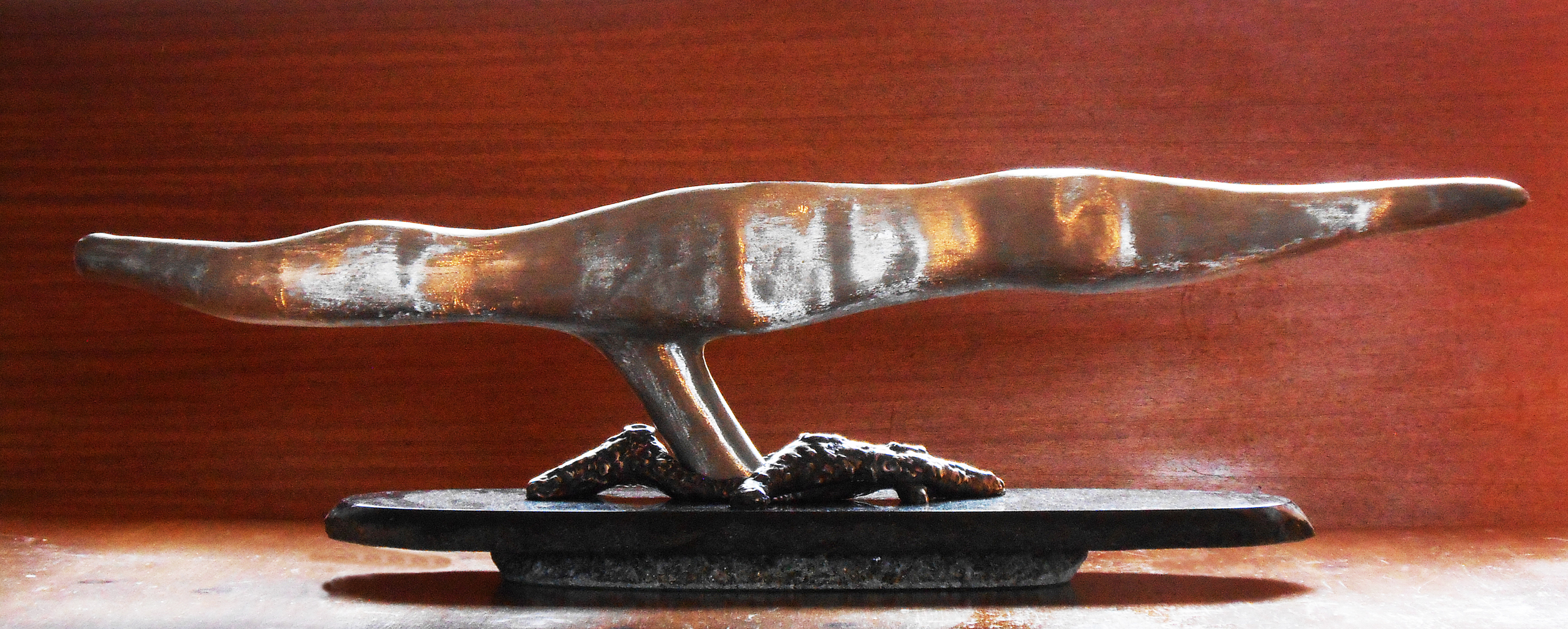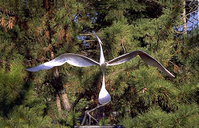 "Egret", stainless steel & bronze, 61.5" w x 39" h, SOLD, unique, 1994
