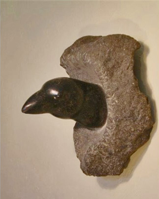 "Little Bird in Tree", basalt, 14" h x 9" w x 9.75" d, unique, 2007