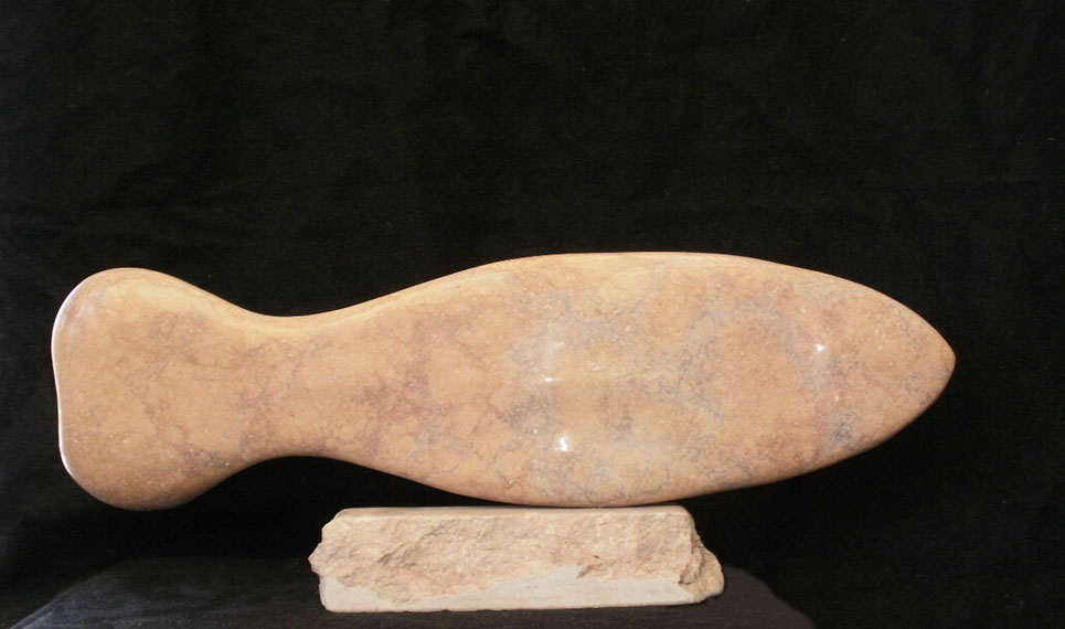 "Long Pink Fish", Portuguese pink marble, 10" h x 36.5" w x 2" d, unique, 1990- SOLD