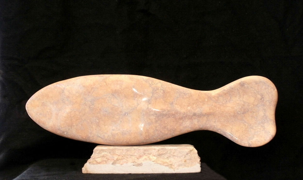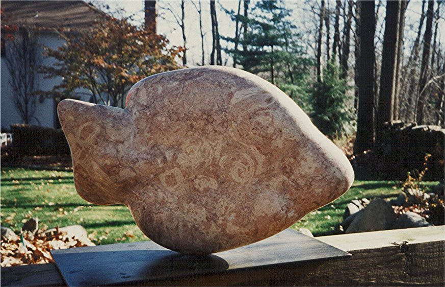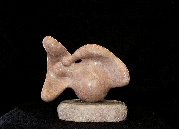 "Jumping Fish", Florentine pink marble, 19.5" h x25" w, unique, 1992