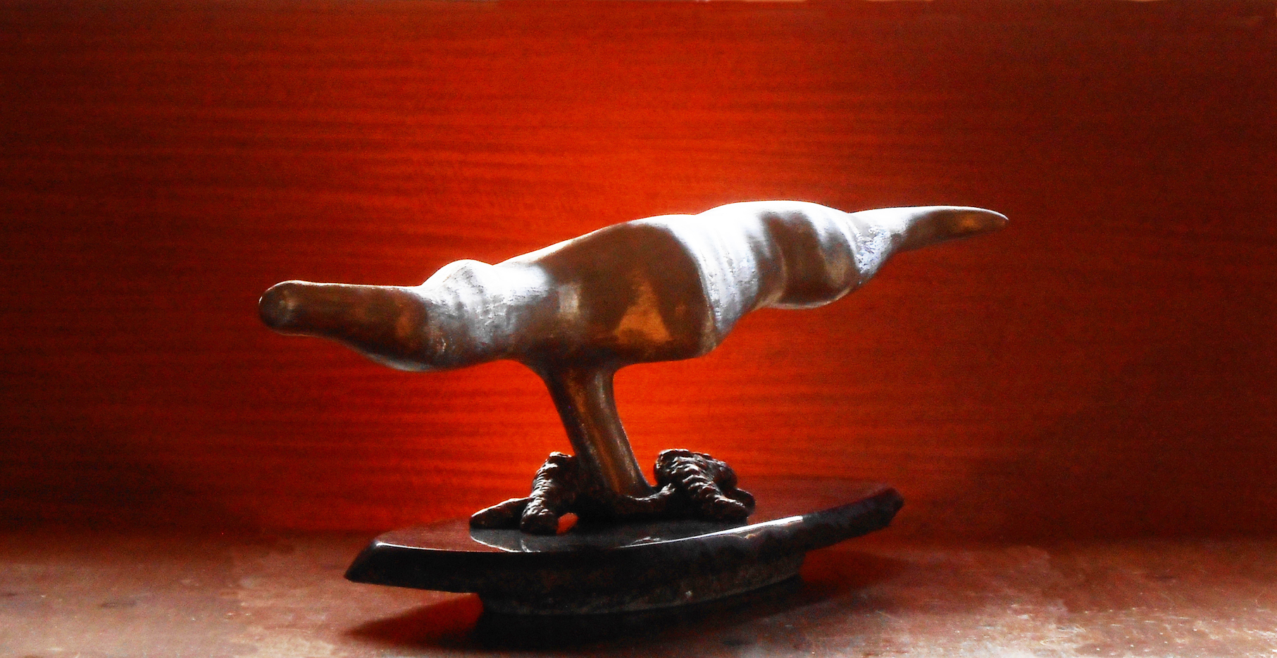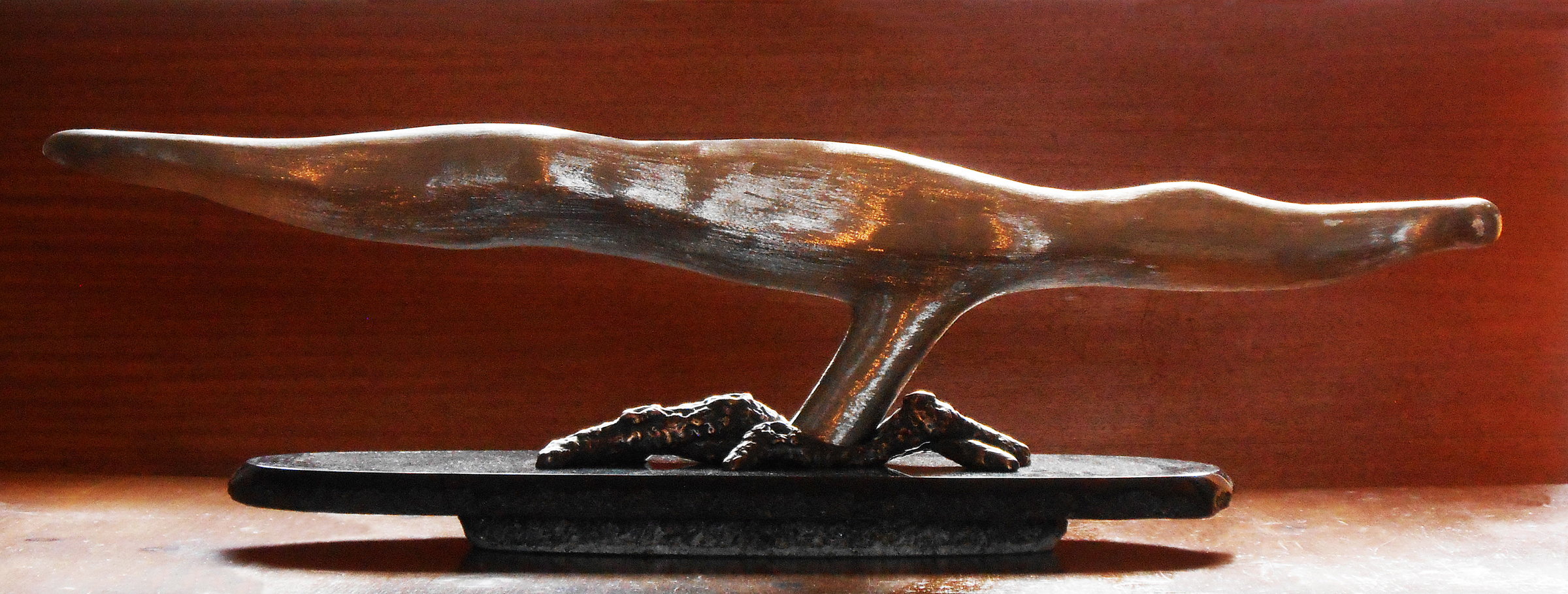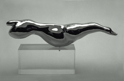 "The Hunt", polished aluminum, 5" h x 21" w, edition # 4-10, 1976