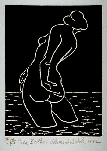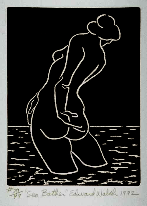 "Sea Bather", soft ground etching, edition # 70-100, 1999 6" wide x 8" high