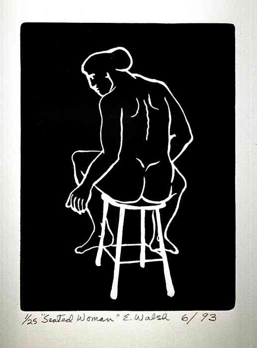 "Seated Woman": soft ground etching, edition # 1-25, 1993, 9" wide x 11.75" high