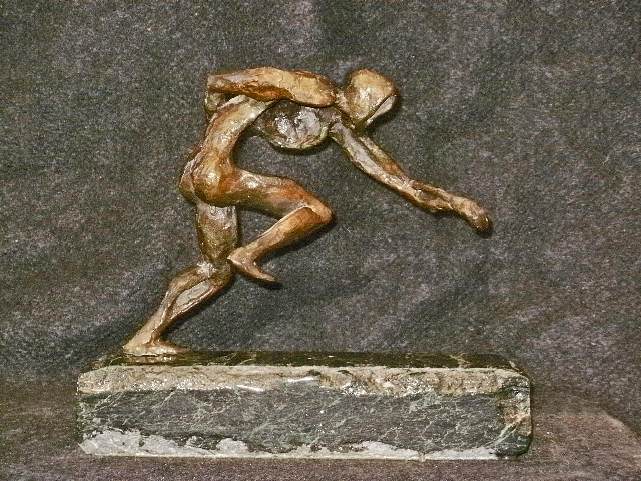 "Crouching Figure", model for bronze, 7” long x 5.5” high x4.25” deep