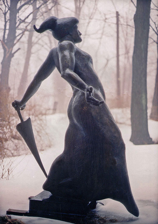"Lady with Umbrella", model for bronze, 74" h x 55" w, 1996