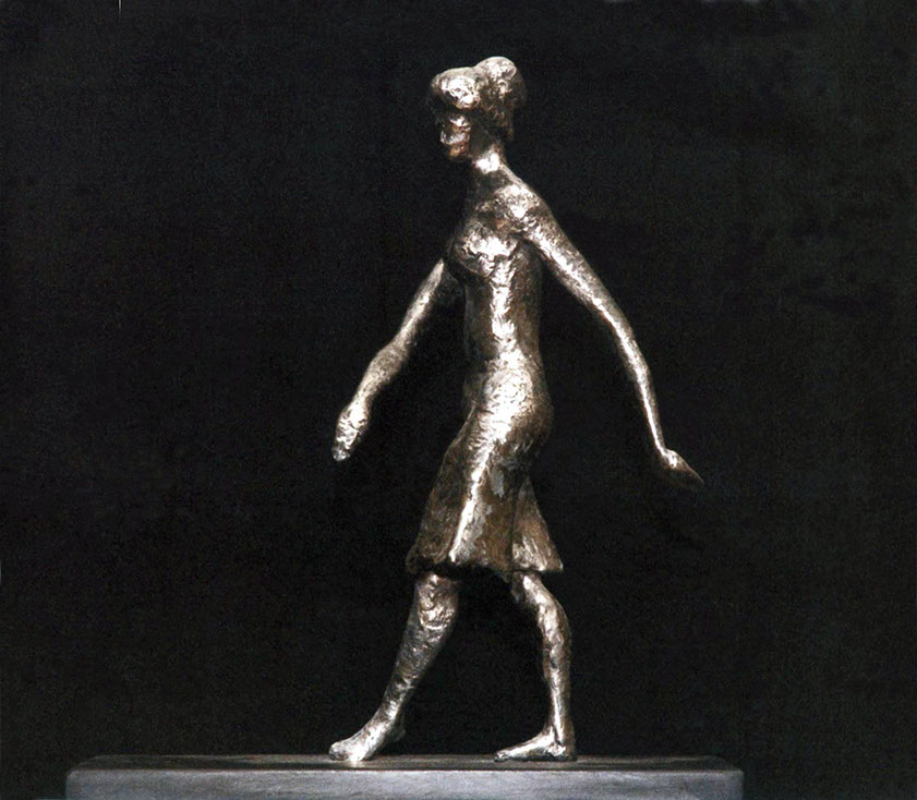 "Walking Woman", stainless steel, 14" h, unique, SOLD, 1993
